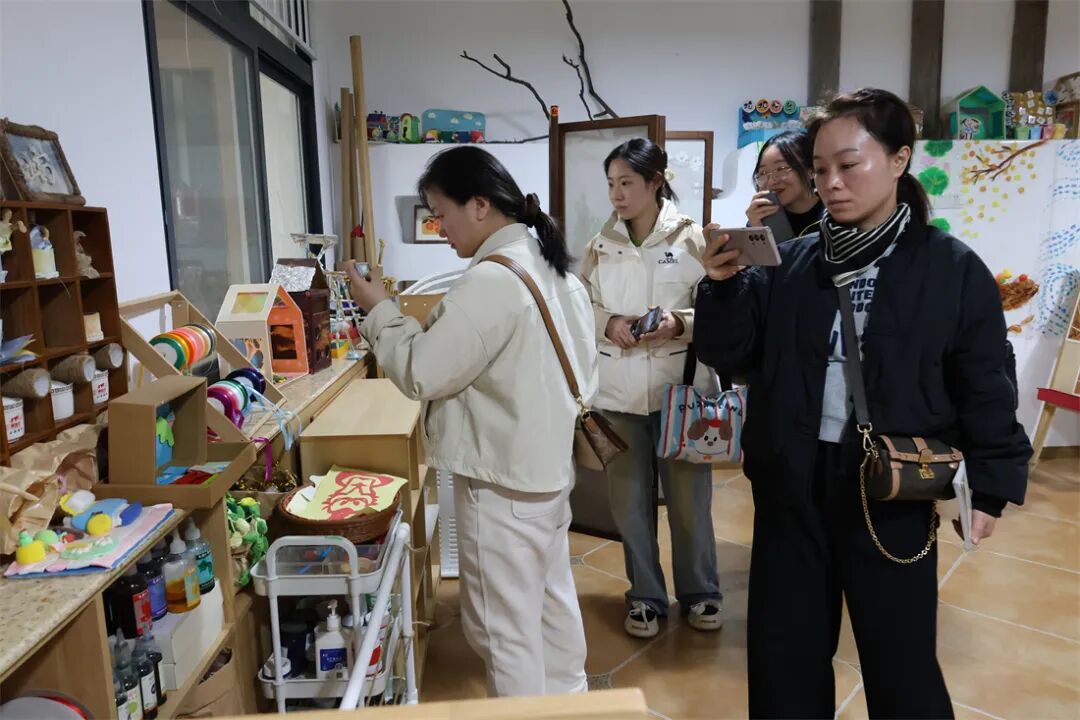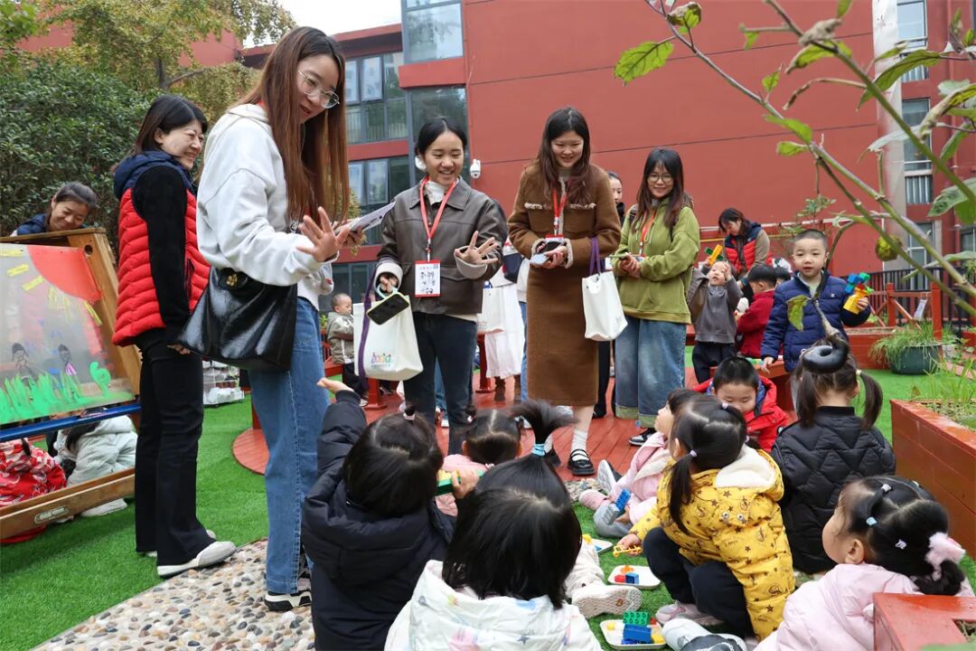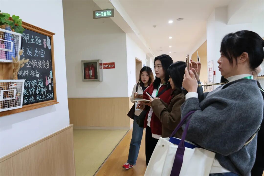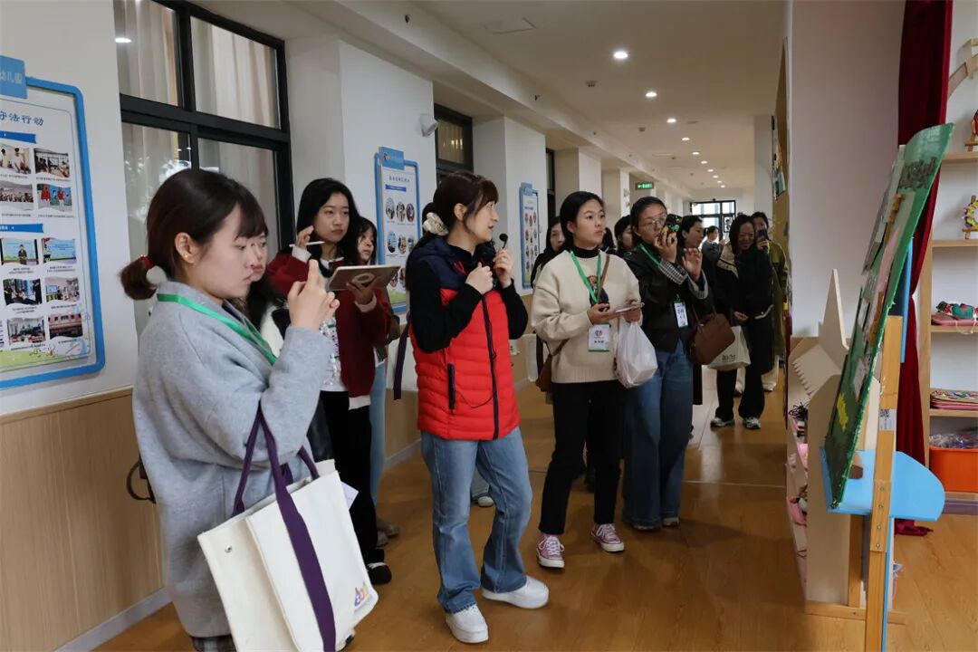 分享结束后,教师们在保教主任杨虹茜、陈鹤婷和刘洁的带领下,分组对幼儿园的室内外环境进行了参观。从充满童趣的班级活动室、功能多样的专用活动室,到绿意盎然的户外游戏场地、丰富多样的运动设施,大家边走边看、边听边议,不时停下脚步拍照记录,与身边的同伴交流感想。