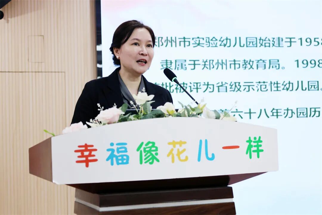 活动伊始,郑州市实验幼儿园副园长黄艳代表幼儿园全体师生,对远道而来的幼儿园园长、骨干教师表示最诚挚的欢迎,并期望每一位老师都能在郑州市实验幼儿园的短暂停留中,感受到教育的幸福与温暖。随后,黄艳向与会教师们系统介绍了幼儿园深厚的园所文化。她从“有准备的环境”讲起,到独具特色的“互动式园本课程”,层层深入,向与会教师生动展现了幼儿园如何将“幸福教育”的理念浸润到每一个角落。无论是精心设计的物理空间,还是充满生机与对话的课程体系,都体现了幼儿园以儿童为本的初心和为孩子提供优质教育环境的全情投入,让在场的老师们深刻感受到了其背后的教育匠心与用爱耕耘的执着。