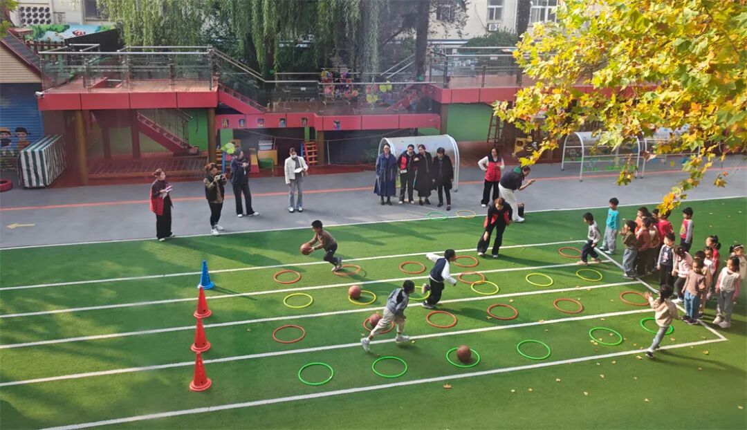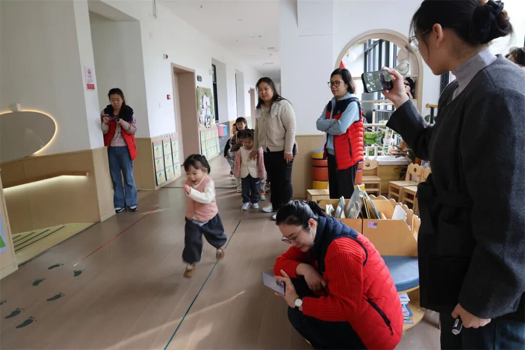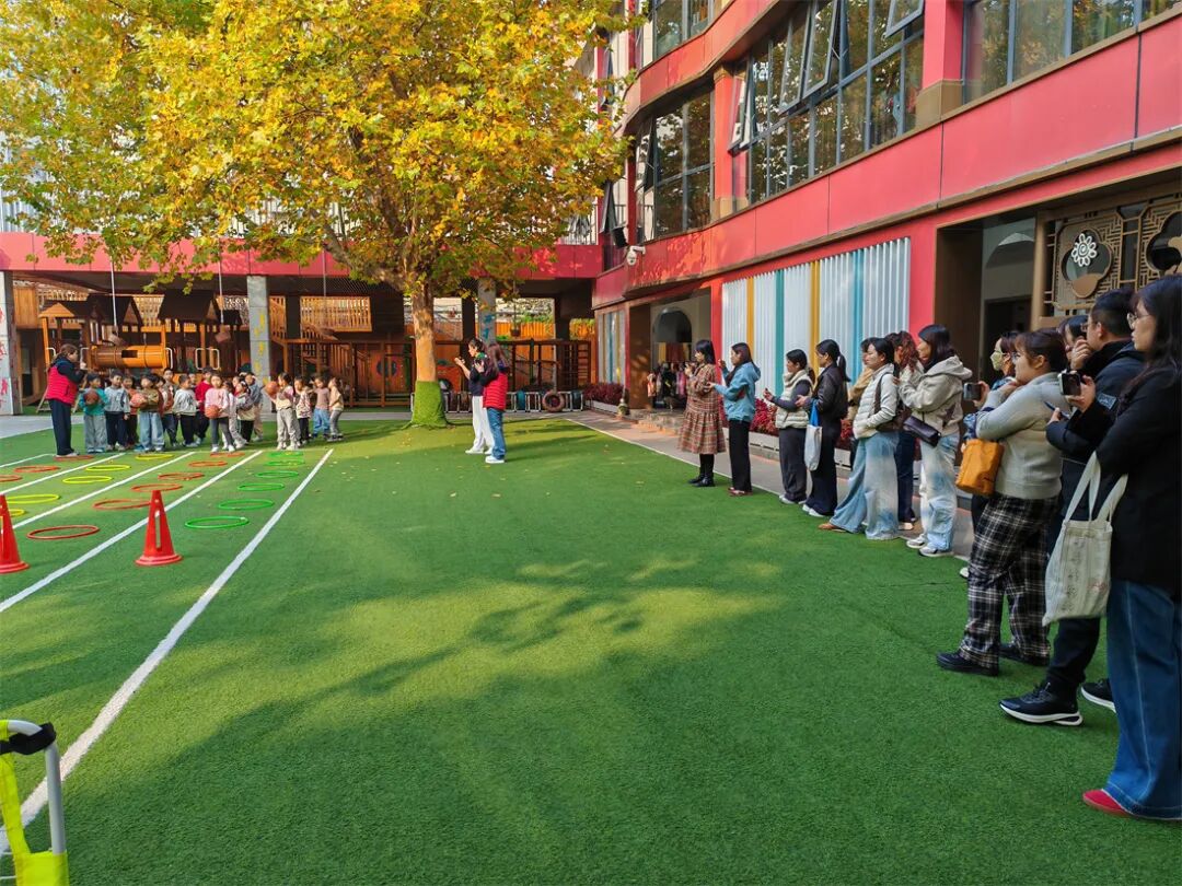 实践观察环节正式开始,教师们按年级组进入活动场地,用镜头记录下孩子们奔跑、跳跃、攀爬、协作的精彩瞬间。周教授穿梭于各个活动区域,时而驻足凝视,时而与身旁教师低声交流,帮助大家解读幼儿行为背后的发展意义,及时点拨观察的视角与方法。