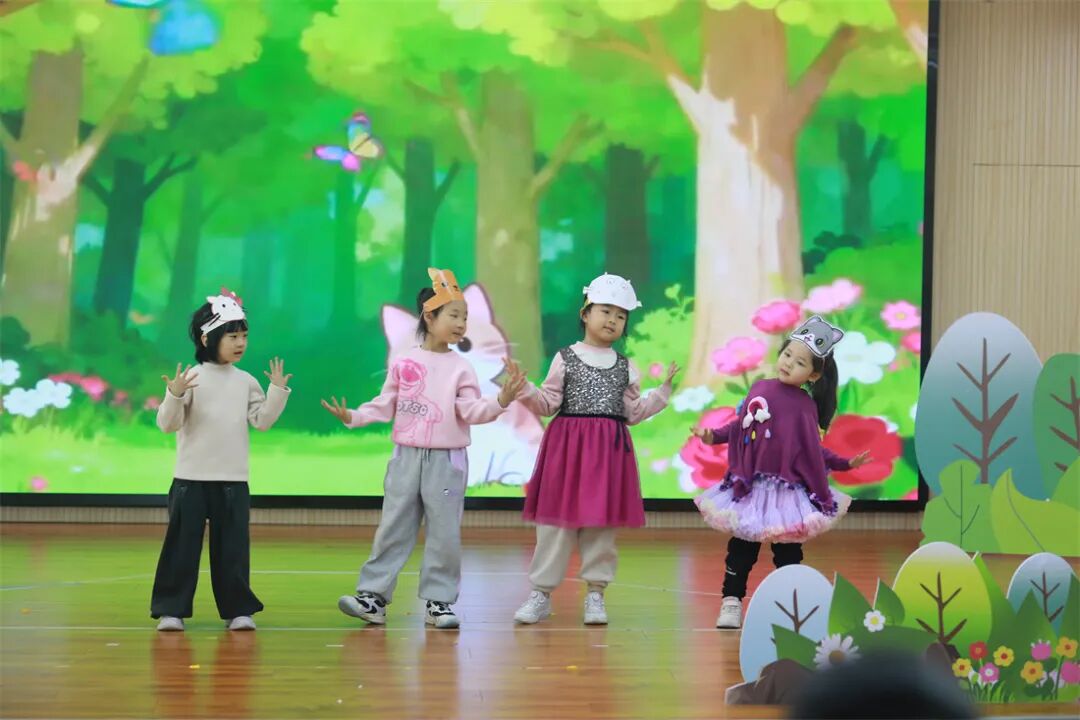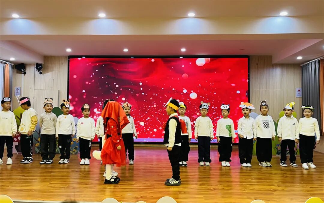 舞台上,孩子们不再是“听众”,而是故事的“主角”——他们自信地走位、大声地表达、投入地表演,眼神里满是光芒。台下,家长们不时鼓掌、拍照,有的家长感慨:“没想到孩子能记住这么多台词,还会和同伴配合,真的长大了!”