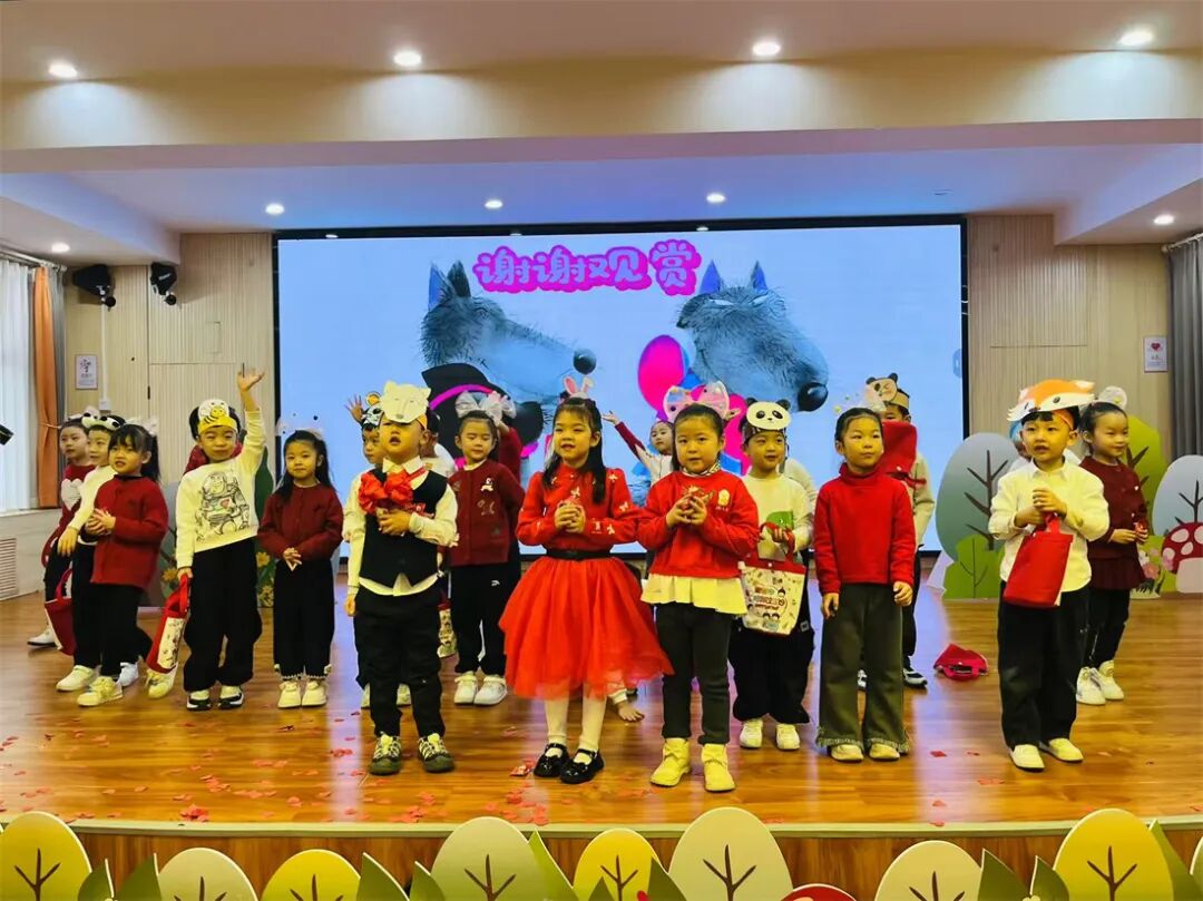 活动前期,孩子们经过绘本学习、剧本创编、道具制作、戏剧排练等环节,最终在家长的见证下,呈现了《咕咚来了》《彩虹色的花》《章鱼先生卖雨伞》《100只兔子想唱歌》《大灰狼娶新娘》等5部精彩绘本剧,让“阅读”与“成长”在舞台上绽放光芒。