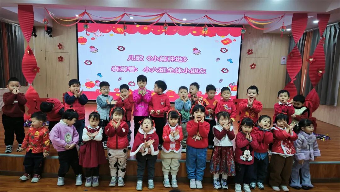 接下来的表演环节更是精彩不断、亮点纷呈!小班的小朋友们按照班级顺序依次登场,带来了一个又一个充满童趣与创意的节目。有的宝贝带来歌曲《手指变变变》,小小手指在节奏中变换,搭配着天真可爱的动作,萌态十足,引得台下阵阵欢呼。有的萌娃化身活泼的“小白兔”,蹦蹦跳跳地演绎儿歌《小白兔盖新房》,生动的表情、形象的动作,将小白兔盖新房的场景展现得活灵活现。有的小朋友带来充满传统韵味的《捏面人》和温柔治愈的《大树妈妈》,将动听的歌声与趣味故事完美融合,让大家沉浸在奇妙的童话世界里。有的宝贝用《西游记》儿歌演绎经典魅力,稚嫩的嗓音唱出别样韵味。一曲《我爱我的幼儿园》更是满含真情,道出了对幼儿园的喜爱。还有的小朋友们用《冬天到》描绘出冬日雪花纷飞、银装素裹的美好景象。《小乌龟爬山坡》则被演绎得惟妙惟肖,尽显勇敢拼搏、坚持不懈的小模样。